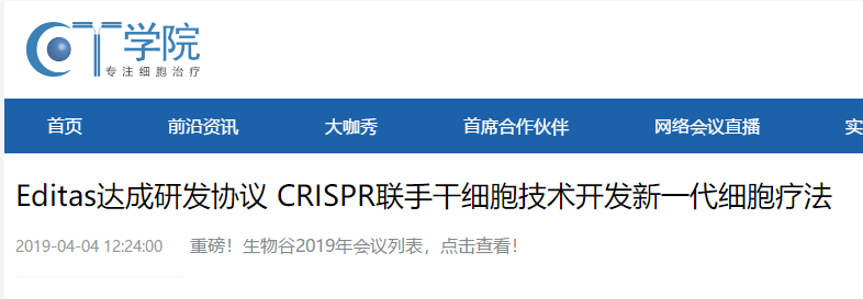 2019-04-11 查看更多4月4日,由基因編輯界的領(lǐng)軍人物張鋒博士創(chuàng)建的基因組編輯公司Editas Medicine宣布,與BlueRock Therapeutics簽訂了一項(xiàng)戰(zhàn)略…