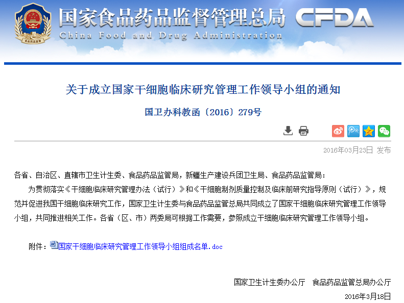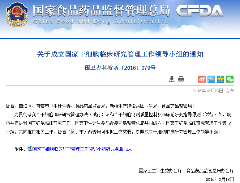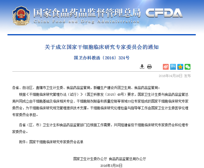 2016-03-30 查看更多各省、自治區(qū)、直轄市衛(wèi)生計(jì)生委、食品藥品監(jiān)管局,新疆生產(chǎn)建設(shè)兵團(tuán)衛(wèi)生局、食品藥品監(jiān)管局:為貫徹落實(shí)《干細(xì)胞臨床研究管理辦法(試行)》和《干細(xì)胞制劑質(zhì)量控制及臨床前研究指導(dǎo)原則(試行)》,規(guī)范并促進(jìn)我國(guó)干細(xì)胞臨床研究工作,國(guó)家衛(wèi)生計(jì)生委與食品…